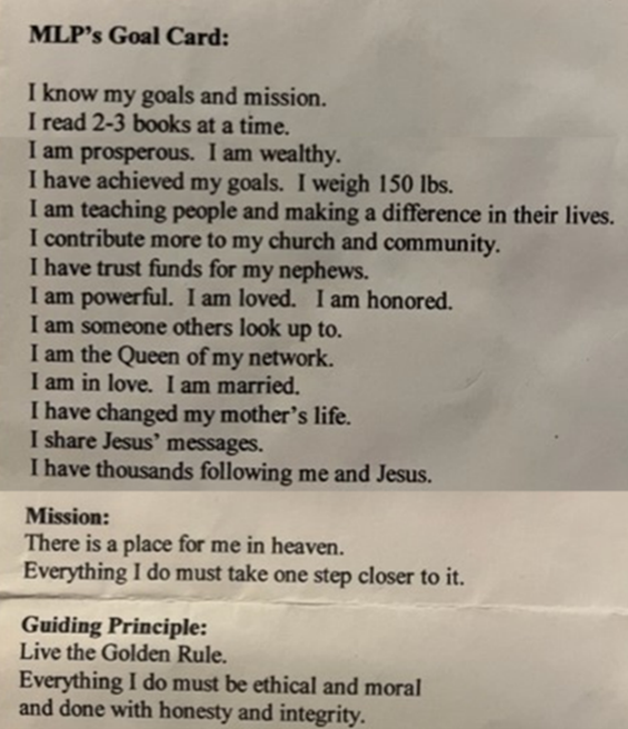 It’s important to point something out in how I phrased what’s in my goal card. Notice the language. “I AM. I HAVE.” The words don’t say, “I WANT” what I listed. They are written as if I already am in possession of them. I can’t stress enough how important that nuance is.
